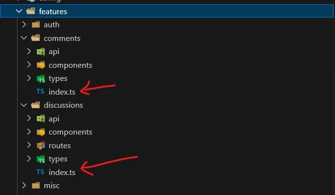 javascriptimport { AwesomeComponent } from "@/features/awesome-feature";